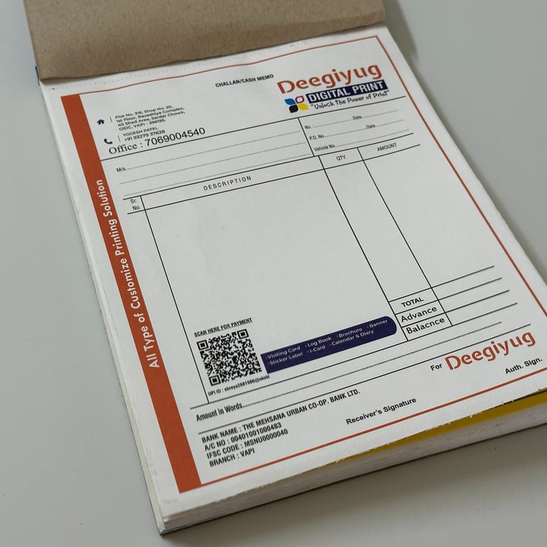 Bill Books – Multi-part NCR (no carbon required) books with customizable branding.